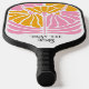 Boho colorful 70's style retro pink gold orange floral pickle ball paddle with retro flourished typography. A 60's and 70's style vibe. Vibrant and pretty.