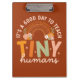 Introducing our Retro Boho Preschool Teacher Quote Clipboard! Suitable for back-to-school events or teacher appreciation day. Featuring a rainbow and flowers in yellow, peach, orange, and green featuring a quote "It's a good day to teach tiny humans."