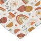 This playful retro inspired illustration features a collection of boho style rainbows, sunbursts, abstract shapes, and botanical sprigs arranged in a balanced repeating pattern. Warm earthy tones of terracotta, rust orange, mustard yellow, sage green, and soft beige create a relaxed mid century inspired color palette. Simple geometric forms such as arches, circles, and half suns blend with small leafy accents to give the design a cheerful, modern bohemian aesthetic. Set against a light textured background, the artwork captures the charm of retro geometric design with a soft boho decorative style.