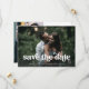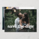 This trendy and boho save the date card features two of your favorite personal photos, with retro white handwritten text. The back of the card also features more of your wedding details, plus a scannable QR code to provide your guests with more info. A simple and stylish look that will fit perfectly with your wedding style!
