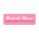 Bold return address labels with retro typography. White and red text on a pink background. Fonts and colors can be customized with the design tool.