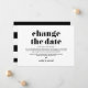 Change the date! Announce to your family and friends your wedding postponement with this change the date card. it features retro bold typography and stripes pattern. Personalize by adding your names and other details. This wedding postponement card will also be perfect as an elopement announcement.