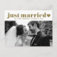 Retro Bold Typography Gold Just Married Photo Postcard