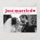 Just Married! Announce your elopement or wedding with this just married postcard. It featuring red retro bold typography with a heart accent. Personalize by adding your names, wedding date, message and photos. This just married card is perfect for any wedding theme and season. It's available as a flat card, postcard and folded card.