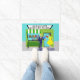 Attention, all bookworms! This Retro Book Lovers Door Mat is the design for you. This 1960's style, minimalist art, cartoon drawing features a quaint Mom and Pop bookstore. It's the kind of shop with a helpful staff--where browsing is encouraged and shelves are stocked with everything from current bestsellers to obscure first editions. The green, stone building looks as if it has always been a part of the town's landscape. It has a green and white awning over an aqua window filled with colorful books just waiting to transport readers to other times and places. Step through the aqua door to find your next adventure. A bright, green bench on the front walk offers the perfect spot for "taking a load off." The sign above the store says, "The Shop Around The Corner." Today, on the front walk, it looks as if love is just around the corner for a couple of unsuspecting bibliophiles. We see a fair haired man in a navy suit and red necktie with his nose in a bright, blue book. Walking in the opposite direction, we see a brunette woman in a lemon, yellow dress. She is entranced in her own red-bound page turner. Perhaps they each need to use their black framed glasses to watch where they are going. If this were a romantic comedy, this would be their meet-cute. If we stick around, we are sure the witness the opening passages to this future couple's "happily ever after."