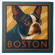 Bold retro-style Boston Terrier portrait capturing the breed’s distinctive tuxedo-like coat, large round eyes, and alert upright ears. Known as the “American Gentleman,” this small, friendly, and intelligent dog is beloved for its charm and spirited personality.
