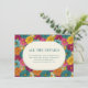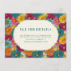 This is a cheerful and colorful style image featuring an array of bright, blooming flowers in shades of orange, pink, yellow, and teal. The floral background creates a lively and festive atmosphere, perfect for celebrating special occasions like weddings. At the center, an elegant white oval frame contains text inviting guests to visit a wedding website for more details on accommodations and additional information. It exudes warmth and joy, making it ideal for adding a touch of nature's beauty to your wedding invitations or announcements.