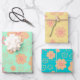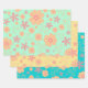 Retro Botanical Floral Pattern Wrapping Paper Sheets. A cute mix and match of green, yellow and turquoise colors by Dreaming Cocoon. Vintage pattern orange color flowers with the summer vibe, perfect gift wrapping for those who love flowers and bright colors!