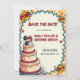 This elegant comic book-style save the date invitation is perfect for a modern wedding. The retro design features a vintage bride and groom illustration and black calligraphy on a comic book-themed background.