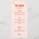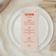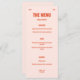 Retro Bright & Bold Peach Wedding Menu. Add bride and groom names, and your wedding menu items, including starters, main dishes, desserts, and drinks. Please contact the designer if you'd like changes made.