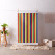 A retro color palette, in denim blue, orange, red, cream and olive.