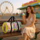 I actually had been searching other sites for a duffle gym bag and I couldn't find any. This one is just what I was looking for with all the features. The inside zip pocket, the outside mesh pocket and LOTS of room inside. Love the printing. Really like how the floral print turned out.