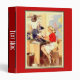 Bright retro binder in orange red with fifties illustration of two women working in an office.Use this for home or work.Customize with your own text on the side