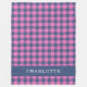 Retro Buffalo Plaid Pink Blue Personalized Name Fleece Blanket