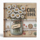 Retro Burlap Look Mason Jar and Daisy Cookbook 3 Ring Binder