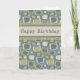 Business from all of us birthday card featuring a colorful blue retro pattern and fun text. Perfect for employees. Customizable, also available in other cards.