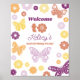 Welcome your party guests with our Retro Butterfly Birthday Welcome Sign. Featuring the same fun butterfly and flower designs as our party invitations and supplies, this cute, personalized welcome sign can be ordered in a common size and framed and placed on your entry table to welcome guests to the event! Or, simply download and print at home for an easy DIY decoration!