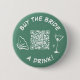 This whimsical button design features a playful "Buy the bride a drink!" message, a stylish cocktail glass, and a convenient QR code for easy gifting. Perfect for bachelorette parties or bridal showers, this green button adds a touch of fun and excitement to any celebration. Show your support for the bride-to-be and make her special day even more memorable with this eye-catching accessory.