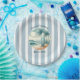Serve up seaside style with this Beach Club birthday paper plate featuring retro cabana stripes, a vintage surfboard, and dreamy ocean waves. Perfect for coastal-themed birthdays, pool parties, or beachy “The Big One” 1st birthdays. Personalize it for a sun-soaked celebration that guests won’t forget!