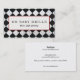 Simple yet strong, classy design featuring black and white checkered pattern and red lined white plaque.