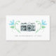 A photography business card featuring a retro camera at its focal point, surrounded by two delicately painted blue watercolor flowers, creating a visual masterpiece that reflects your artistic flair.