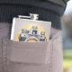 Well made flask, a little better than I had expected. Flask came in clear plastic box which gave it a nice presentation when I took it out of the zazzle packaging. Image is not printed on flask but on sticker. Don't know how this will hold up I haven't used it yet. This would make a Great gift! I plan to purchase more for friends! Cheers. I thought a little brighter than computer. Very crisp, writing wasn't