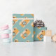 This wrapping paper is perfect for photographers and old school shutterbugs with its all over pattern of a retro style cameras in gold, brown and cream against a light aqua blue background. .