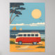Retro Camper Van Beach Road Trip Art Poster
