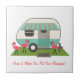 A tile featuring an illustration of a retro camper with pink flamingos in the yard. Text says "Home is Where You Put Your Flamingos!"