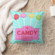 Retro Candy Store Pastel Lollipops on Stripes Throw Pillow