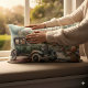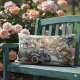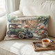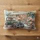 Retro Car & Blooming Boutique Scene Lumbar Pillow