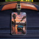 Hit the road in style with this personalized luggage tag featuring a classic retro car driving along a palm-lined street at sunset. The warm sky tones and tropical vibes make this design perfect for beach vacations, road trips, and dream getaways. Your name is elegantly displayed on the front, while the back includes all your contact information for easy identification. Durable and eye-catching, this tag ensures your luggage stands out while adding a touch of vintage travel charm.