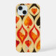 This artwork features a bold and vibrant pattern inspired by classic playing card suits, including hearts, spades, diamonds, and clubs. The design incorporates these iconic symbols into elongated, teardrop-shaped forms, set against a warm, gradient background of reds, oranges, and yellows. The stylized suits are outlined in black and red, creating a striking contrast that highlights the dynamic shapes and colors. The overlapping elements and vintage texture evoke a sense of nostalgia, blending mid-century modern design with a playful twist.
