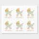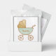 Cute baby shower drink mix party favor that feature a pastel mint green and gold retro baby carriage watercolor and the mother-to-be's name in a stylish script. Personalize the text on the carriage or leave blank.