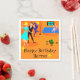 These Retro Cartoon Cocktail Party Disposable Napkins don't have an introverted bone in their body! The mid century modern design features a vibrant cartoon drawing of a living room and a lively cocktail party. There is an attractive couple on the dance floor. The blonde woman in a turquoise dress and her tall, dark and handsome escort are dancing the cha-cha. On the floor, there is a green record player surrounded by vinyl records. Against the far wall, a beautiful redhead is sitting on a blue sofa. She is wearing a bright pink dress. Her only accessory is the martini glass in her hand. To her side is a floor lamp minus the shade. Hmm… Where is the shade? It's on the head of a tipsy man in a blue suit who is clearly the life of the party. He's also holding a martini glass. Whoever decorated the room wasn't afraid of color. It has an orange brick wall and an orange floor. On the wall behind the sofa, there is a teal and turquoise painting of a globe with a black frame. Simply click on the "Customize It" icon to replace the existing text with your own.