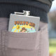 This fun geology hip flask depicts a cartoon geologist in a retro, 1930s-1940s cartoon style. Happy Mr. Sun is shining down on the desert with a happy little cloud and some jolly rocks looking on, while a happy-go-lucky geologist prances out into the field with his rock hammer and hand lens! The text reads "Follow Me! I'm a Geologist!" Let folks know they're in good hands when you're around!