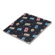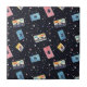This imaginative ceramic tile showcases a vibrant array of vintage cassette tapes scattered across a dark, starry background reminiscent of outer space. Each cassette features unique colors and designs, floating amidst small, colorful dots and stars that enhance the cosmic theme. The pattern evokes a sense of nostalgia, blending retro music culture with a galactic aesthetic, making it a captivating choice for various creative applications.
