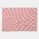 Retro Checkered pattern – lilac and orange twisted check / wavy and warped checkerboard.
