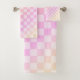 Retro Checkerboard Peach Fuzz Pink Gradient Bath Towel Set