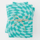 Wrapping paper featuring an aqua blue, twisted checkerboard pattern.