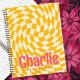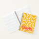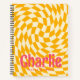 Notebook featuring a yellow, twisted checkerboard pattern and your custom name in raspberry hot pink.