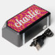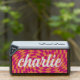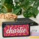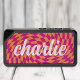 Speaker featuring a hot pink and orange, twisted checkerboard pattern and your name in a white, retro style font.