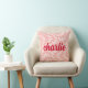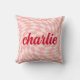 Throw pillow featuring a light blush pink, twisted checkerboard pattern and your name in a red, retro style font.