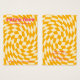 Earring jewelry display card featuring a yellow, twisted checkerboard pattern and your company or design name in a retro style, raspberry hot pink font.