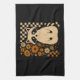 Retro Checkered Halloween Raccoon Kitchen Towel
