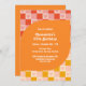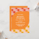 Retro Checkered Heart Bauhaus Red Orange Birthday Invitation