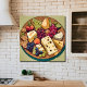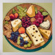 A charming poster showcasing a delightful retro graphic of a cheese platter adorned with grapes and walnuts. Perfect for gourmet food enthusiasts, caterers, or fruit lovers.