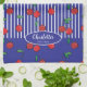 Express your cherry obsession with this sweet red cherry graphic pattern and modern nautical blue and white striped kitchen towel. Personalize with a custom name or message. If you don't like the white on blue stripes, you can easily change the colors to fit your style. Go retro. Go country. Go cottage core. This darling towel is the perfect gift for the chef, cook or baker in your life. A truly unique way to celebrate your cherry mood! Combine with cute apron or potholders from the Cherry Berries Red and Blue Collection in my store. Mon cheri. Original cherries illustration by reedstudio.