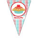 even use this bunting for a Retro market sale or event/party. This bunting measures 6 feet long. Each flag is 5.5 x 8 inches.