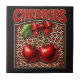 Retro Cherry Coquette Trendy Bow Design on Leopard Ceramic Tile